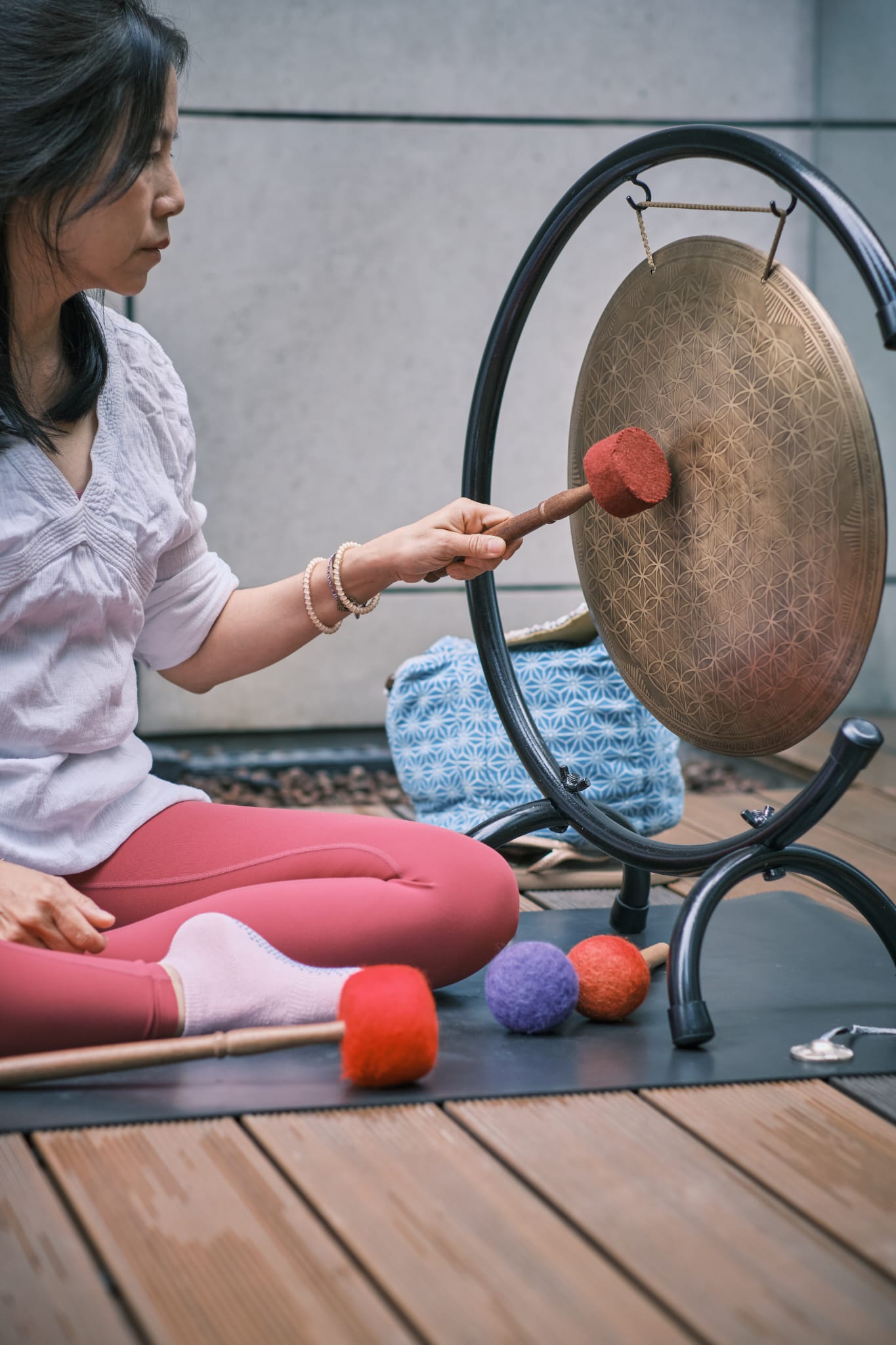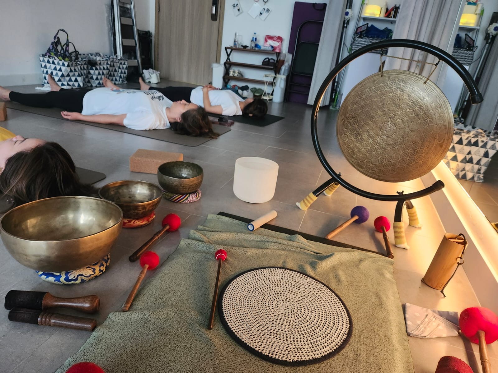 在課堂中,也會配合頌缽聲波療癒,透過敲打頌缽,利用振動的頻率與身體產生共鳴,深入滲透每一個細胞,釋放壓力,達致放鬆。